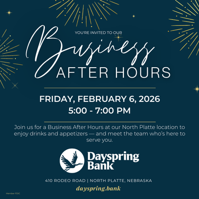 Business After Hours with Dayspring Bank and American Agency! 410 West Rodeo Road North Platte, Ne 5:00p - 7:00p